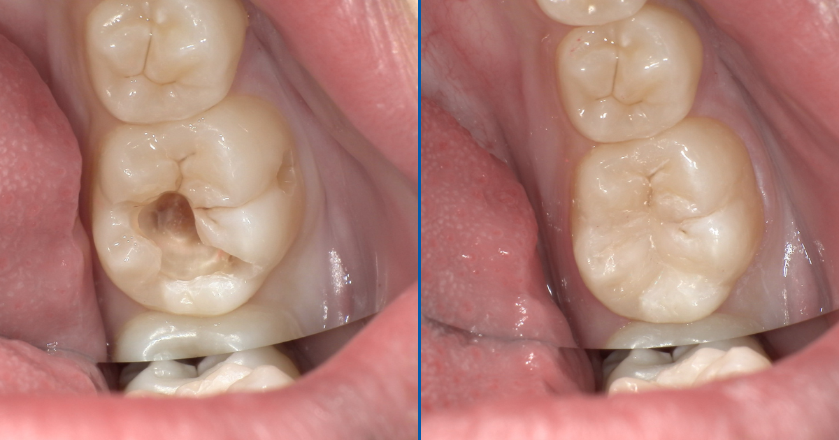 【症例紹介】ダイレクトボンディング 神経に近いむし歯が見つかり、「なるべく削らず、神経も残したい」とご相談をいただきました。 治療前 治療後 1回の治療で神経を残したままむし歯を治療することができました。 術名 ダイレクトボンディング 年齢・性別 20代女性 主訴 奥歯のむし歯を、なるべく削らず神経を残して治療したい 診断名 C2カリエス 治療内容 麻酔を行い、う蝕部を除去後、ハイブリッドレジン充...